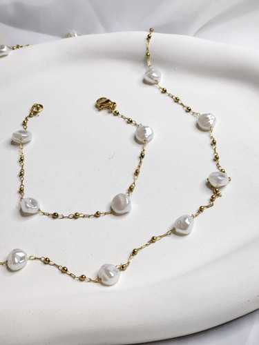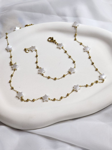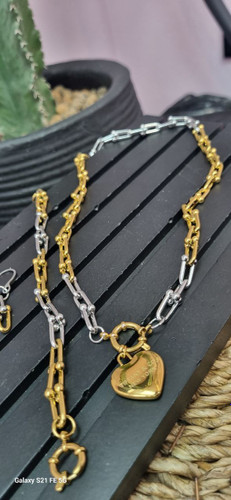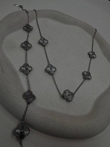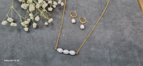 تمامی متریال های کار شده در ست تمام استیل می باشد ست شامل : گردنبند دستبند و گوشواره می باشد