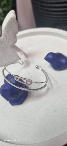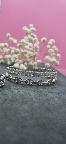 دستبند بنگل استیل فانتزی نگین دار نقره ایناموجود