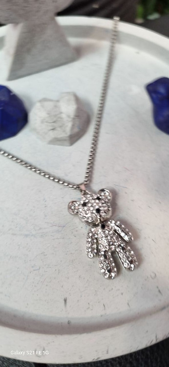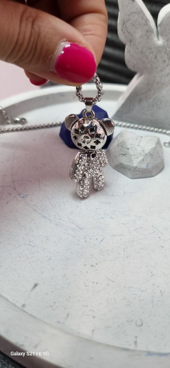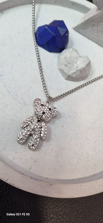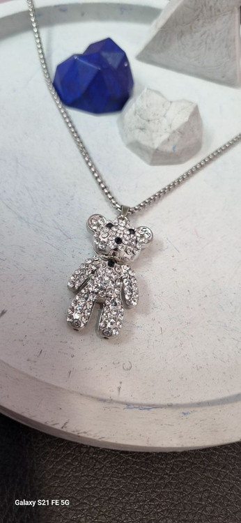 گردنبند استیل نقره ای تدی متحرک نگین دار