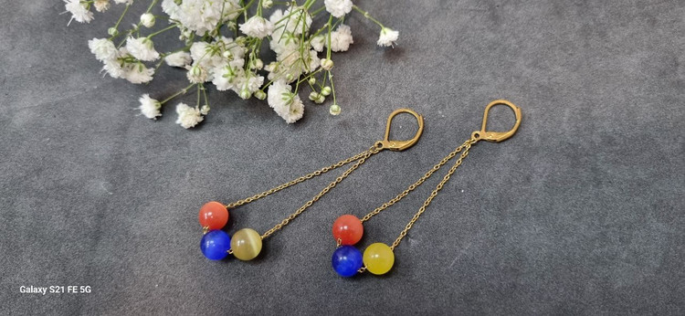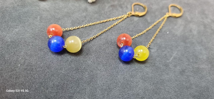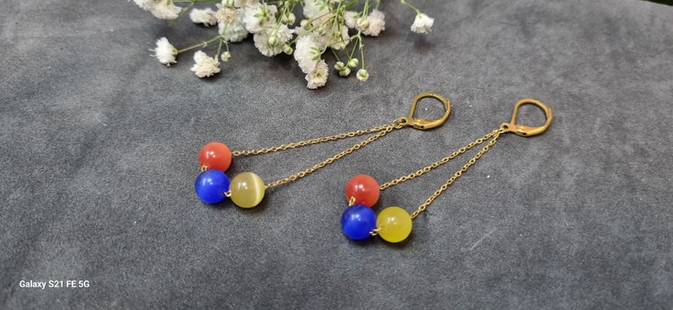 گوشواره استیل اویز سنگ طبیعی چشم گربه