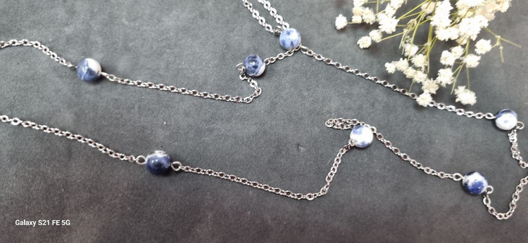 گردنبند استیل نقره ای رو مانتویی سنگ طبیعی لاجورد