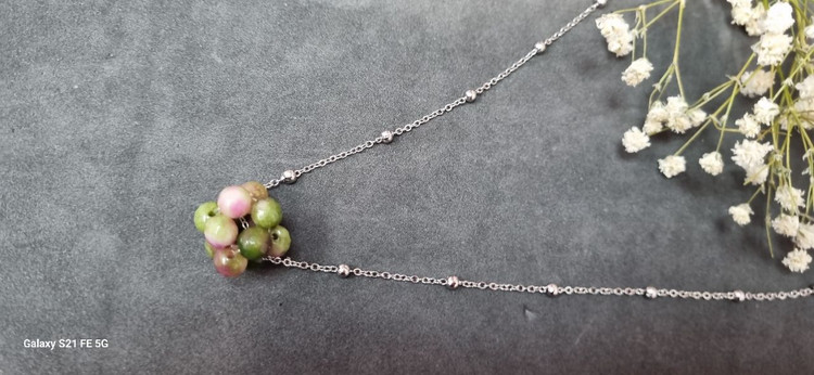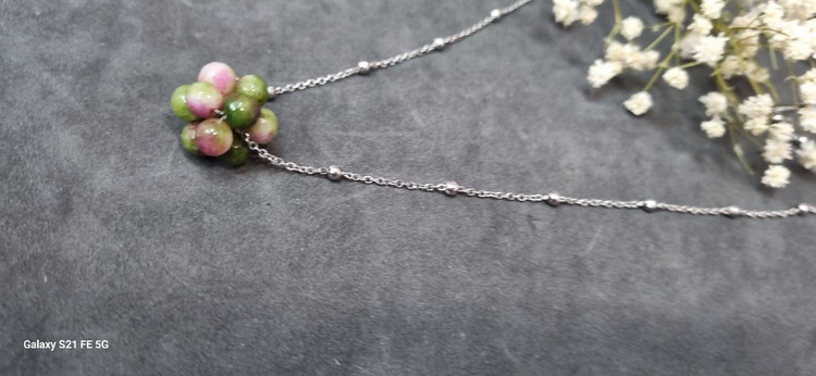 گردنبند استیل نقره ای رو مانتویی سنگ طبیعی جید