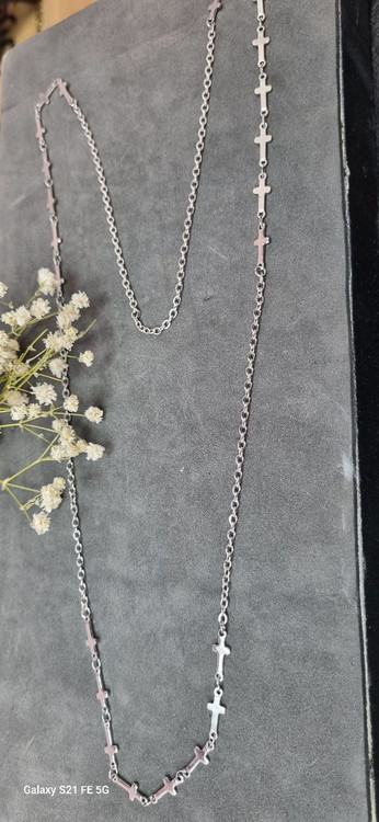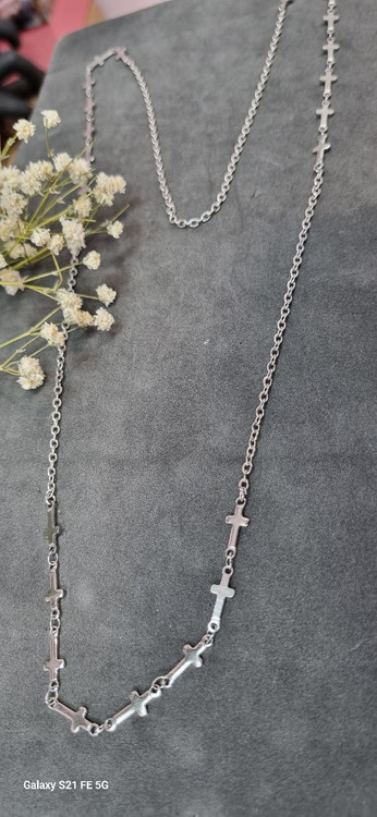 گردنبند استیل نقره ای رو مانتویی صلیب