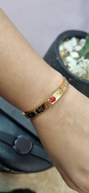 دستبند بنگل استیل وارداتی LV طلایی