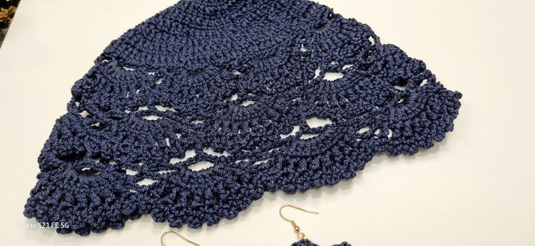 ست کلاه و گوشواره بافت کتان