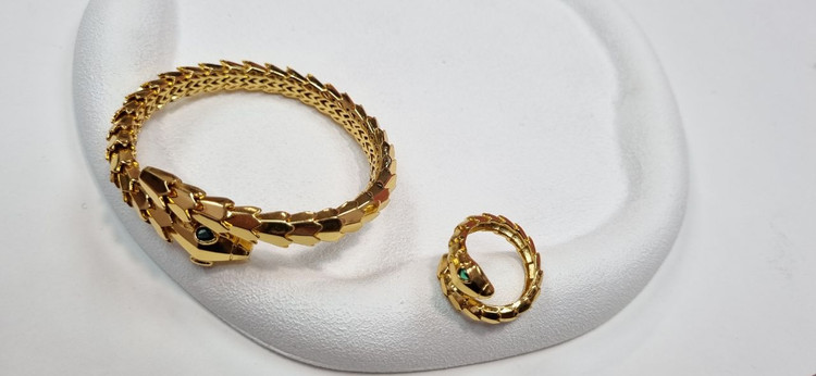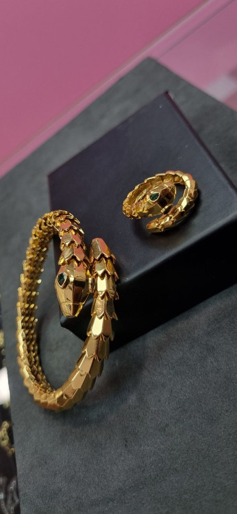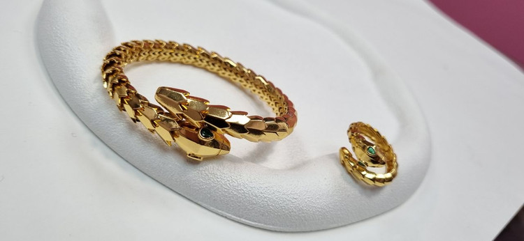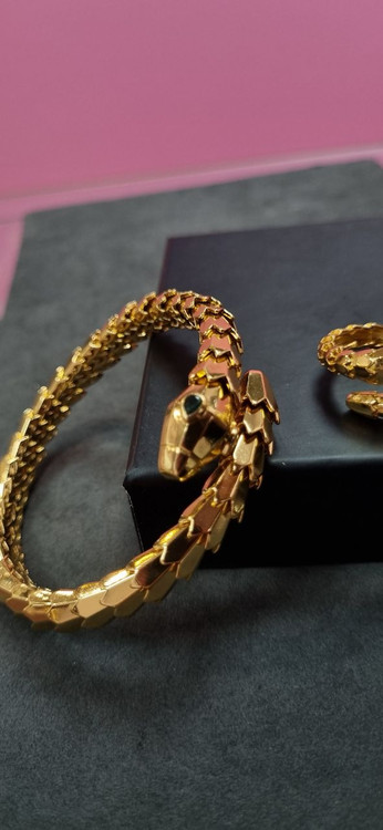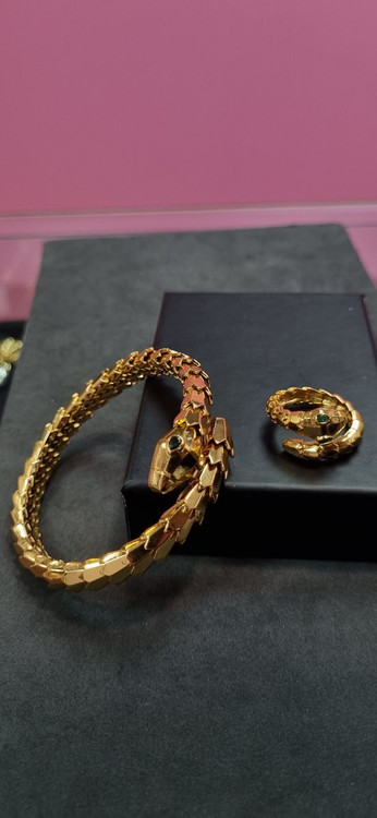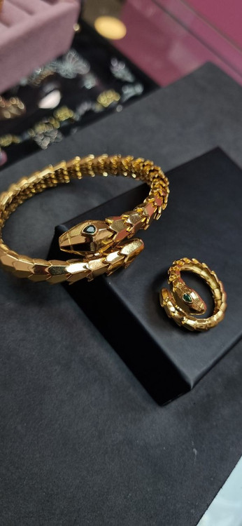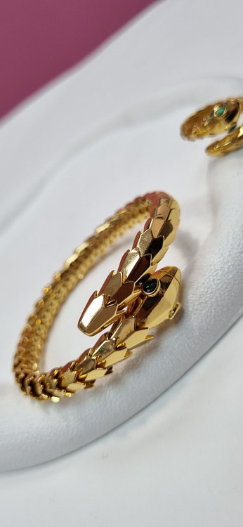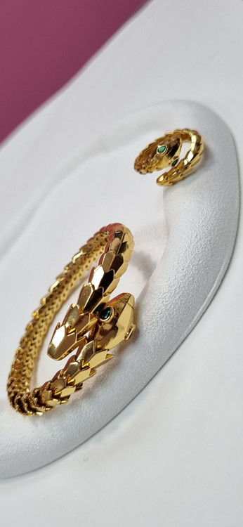 دستبند ست بنگل و انگشتر طلایی ماری منعطف
