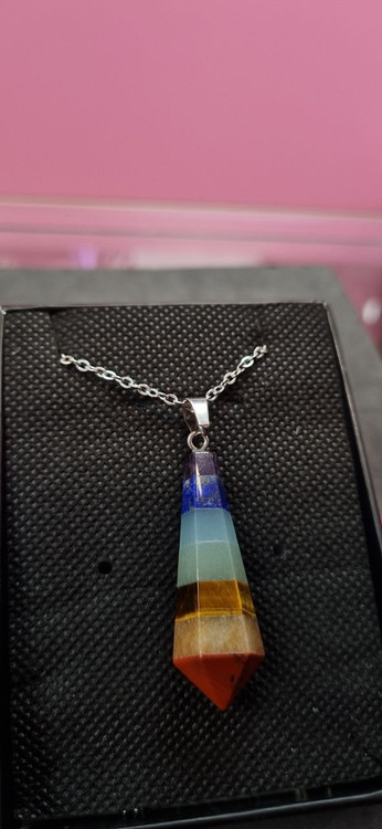 گردنبند استیل با آویز سنگ هفت چاکراه