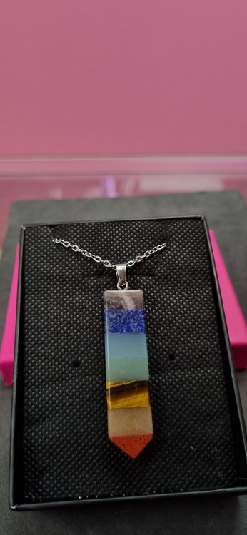 گردنبند استیل با آویز سنگ هفت چاکراه