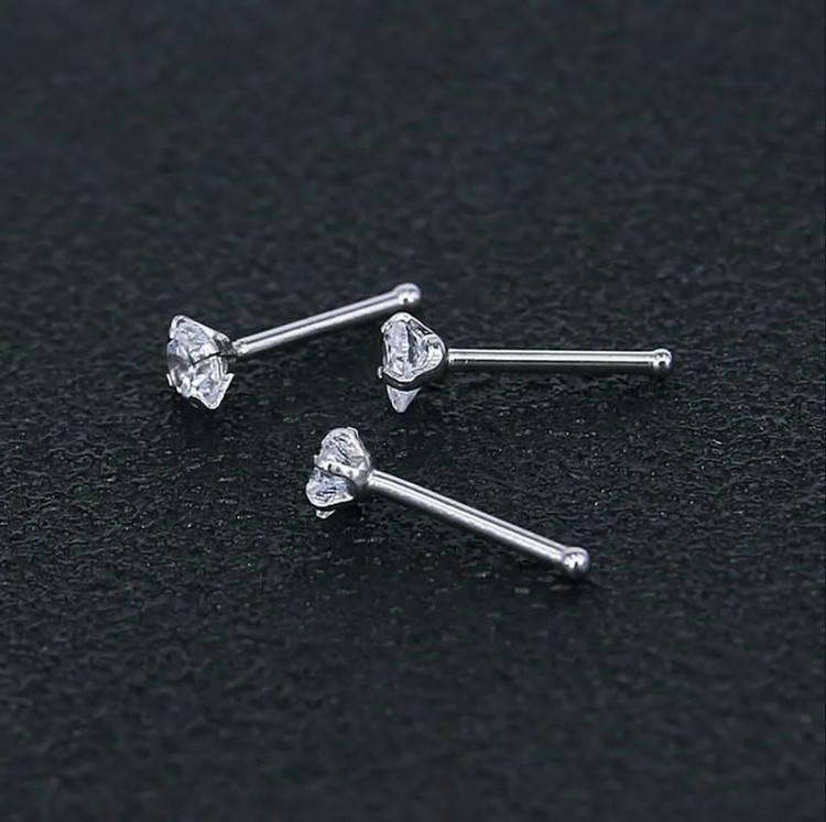 پرسینگ بینی تک نگین نقره ای