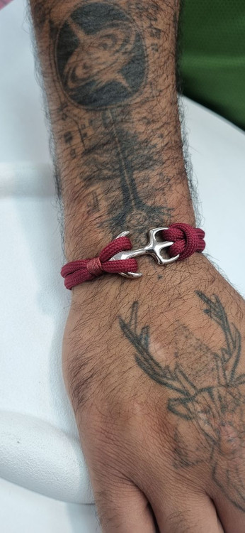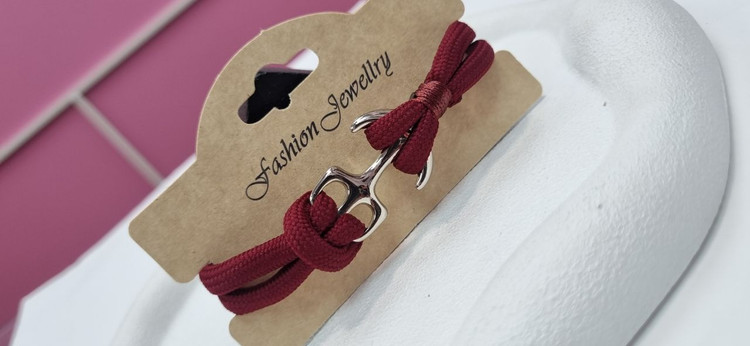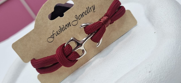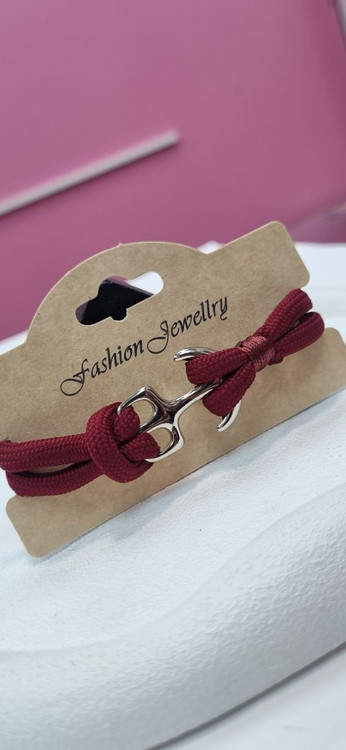 دستبند چرم زرشکی با پلاک استیل نقره ای