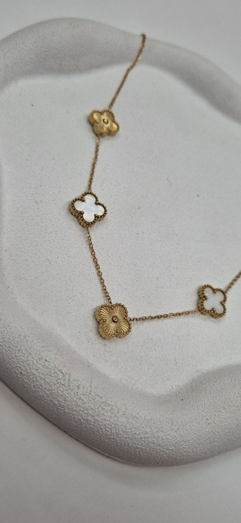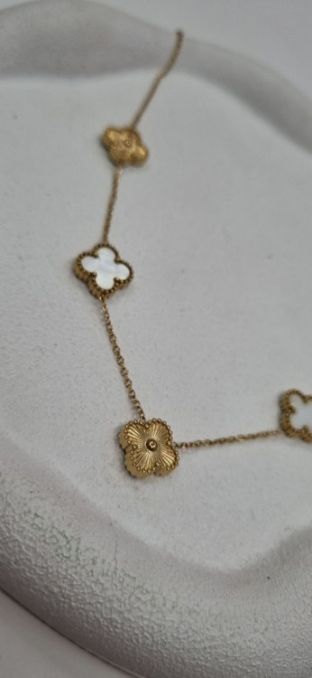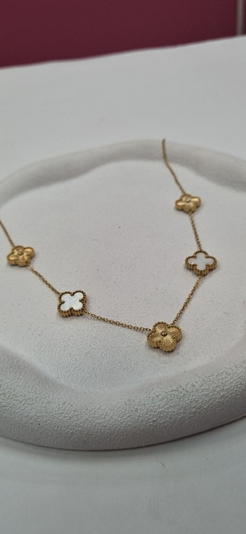 گردنبند استیل ونکلیف دو رو سفید طلایی