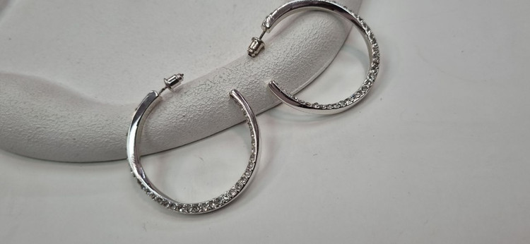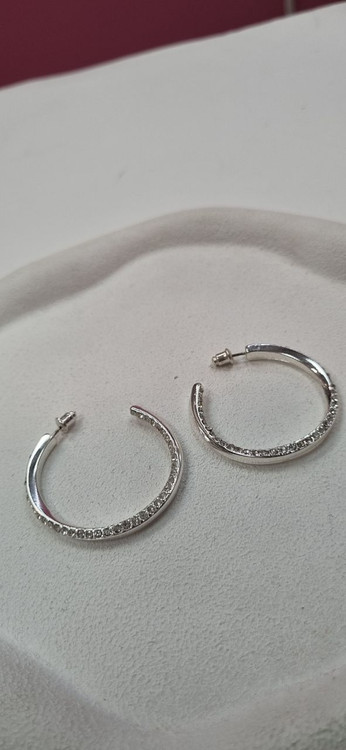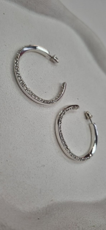 گوشواره استیل حلقه ای نگین دار نقره ای