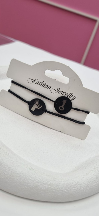 دستبند ست کاپلی پلاک استیل مشکی فاک