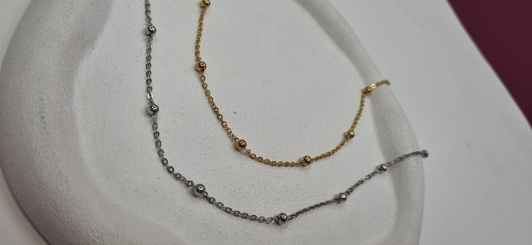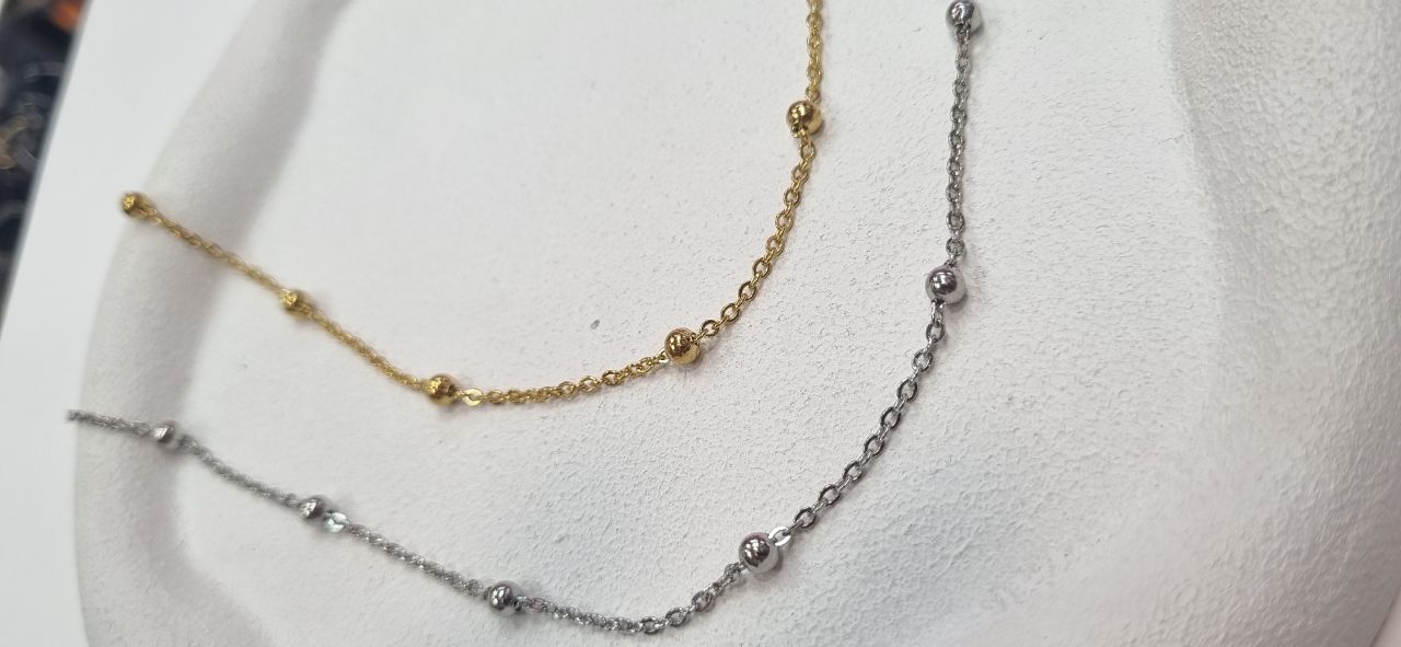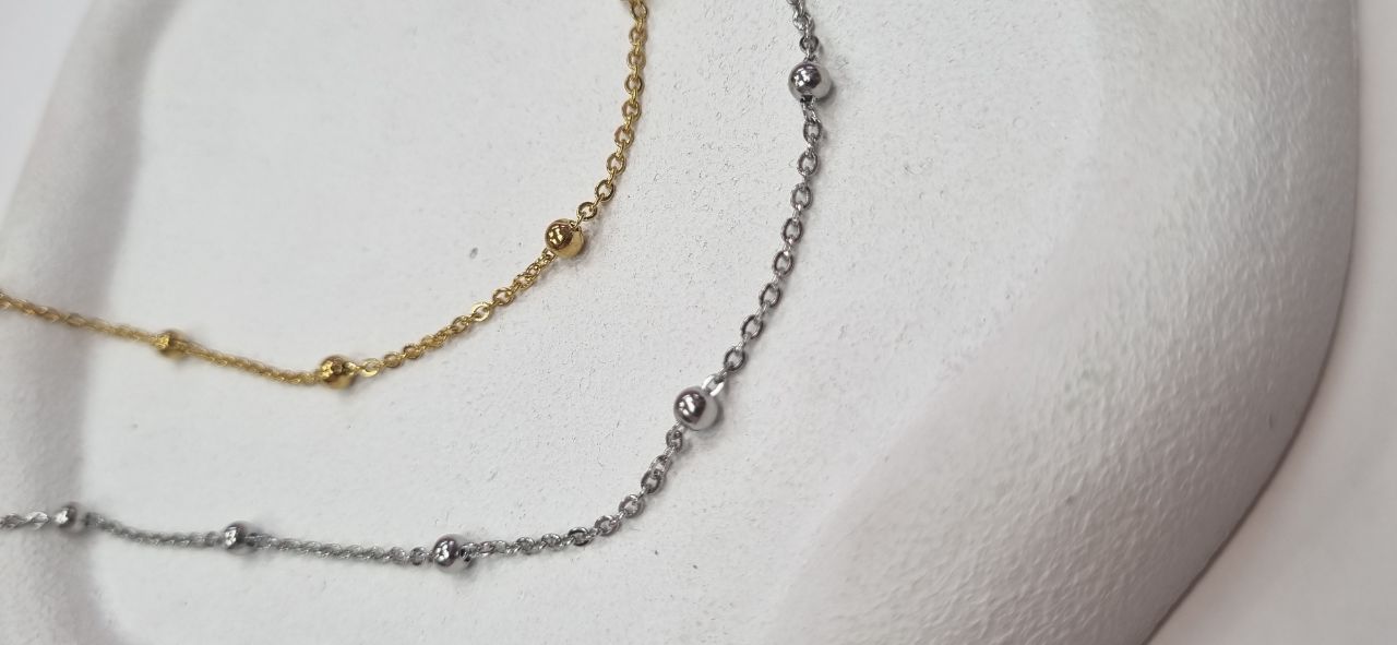 گردنبند دو لاین استیل نقره ای طلایی خلخال