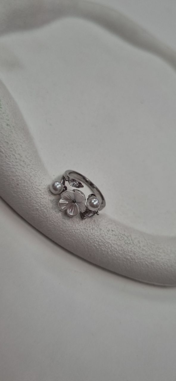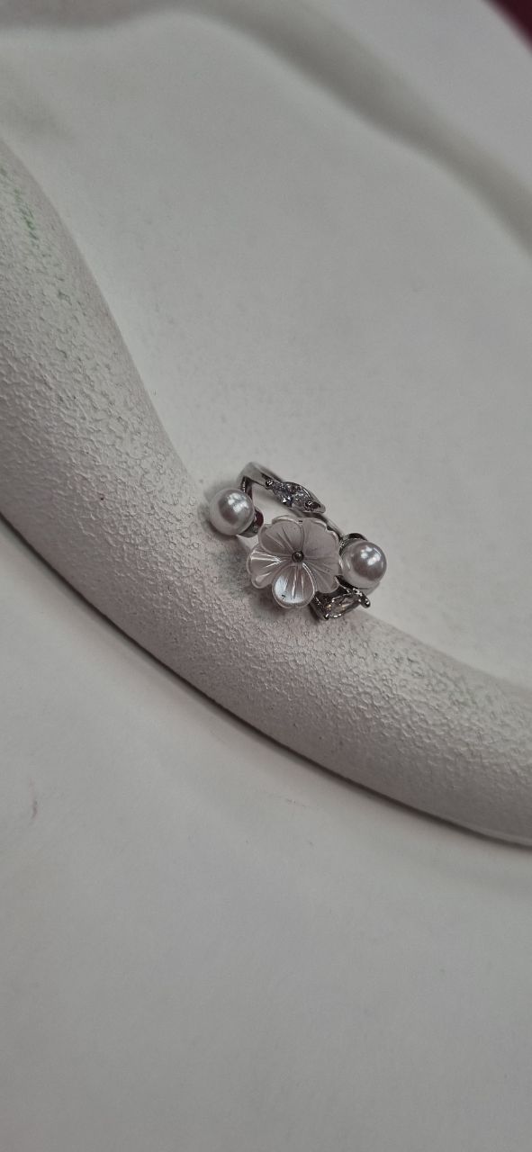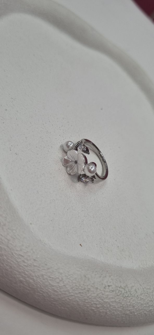 انگشتر استیل نقره ای وارداتی گل مرواریدی