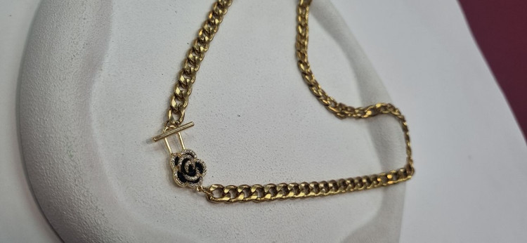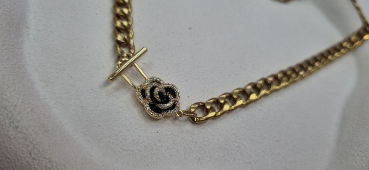 گردنبند استیل کارتیر و قفل تی گل رز نگین دار