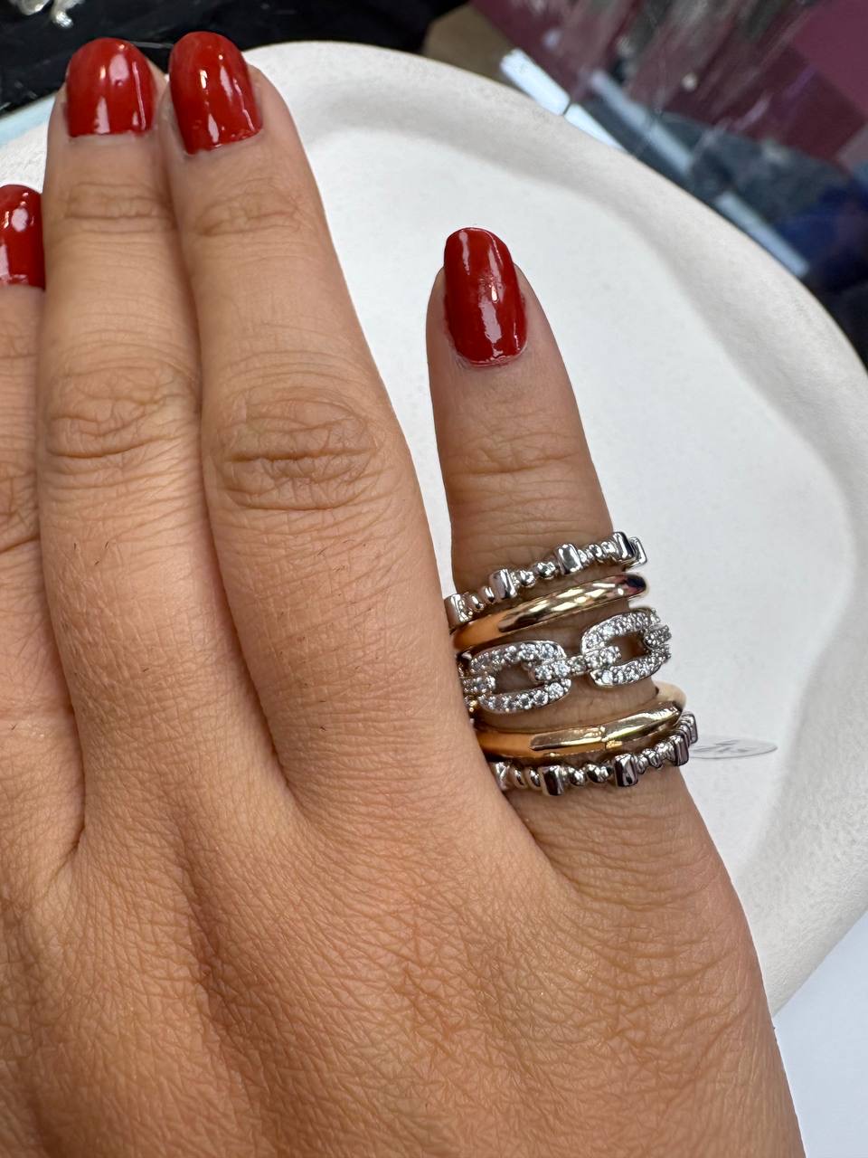 انگشتراستیل طلایی آبکاری طلا پورتوفینو دارای ۵ انگشتر قابلیت جدا استفاده کردن وارداتی رنگ ثابت بدون تغيير رنگ آبکاری طلا دارای سایز ۷