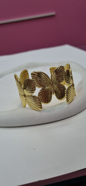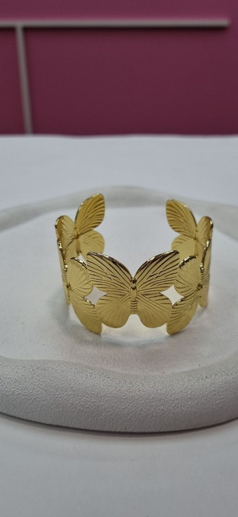 دستبند بنگل استیل وارداتی طلایی پروانه