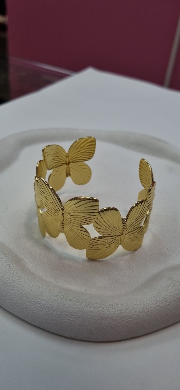 دستبند بنگل استیل وارداتی طلایی پروانه