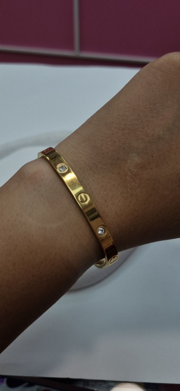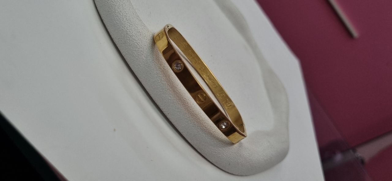 دستبند بنگل طلایی استیل وارداتی کارتیر نگین دار
