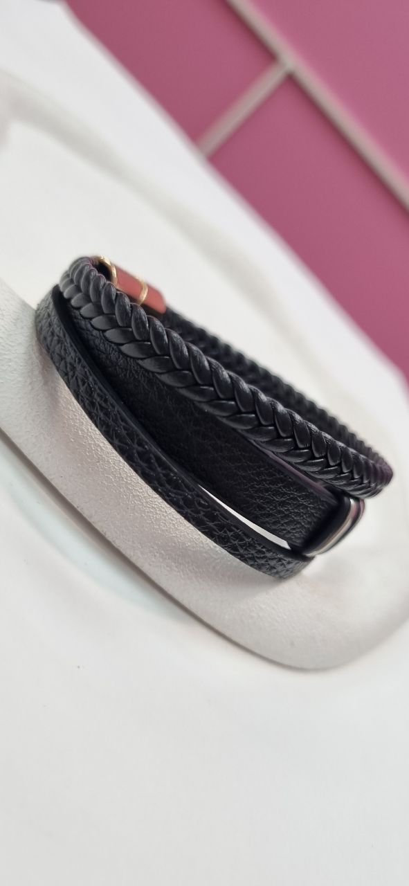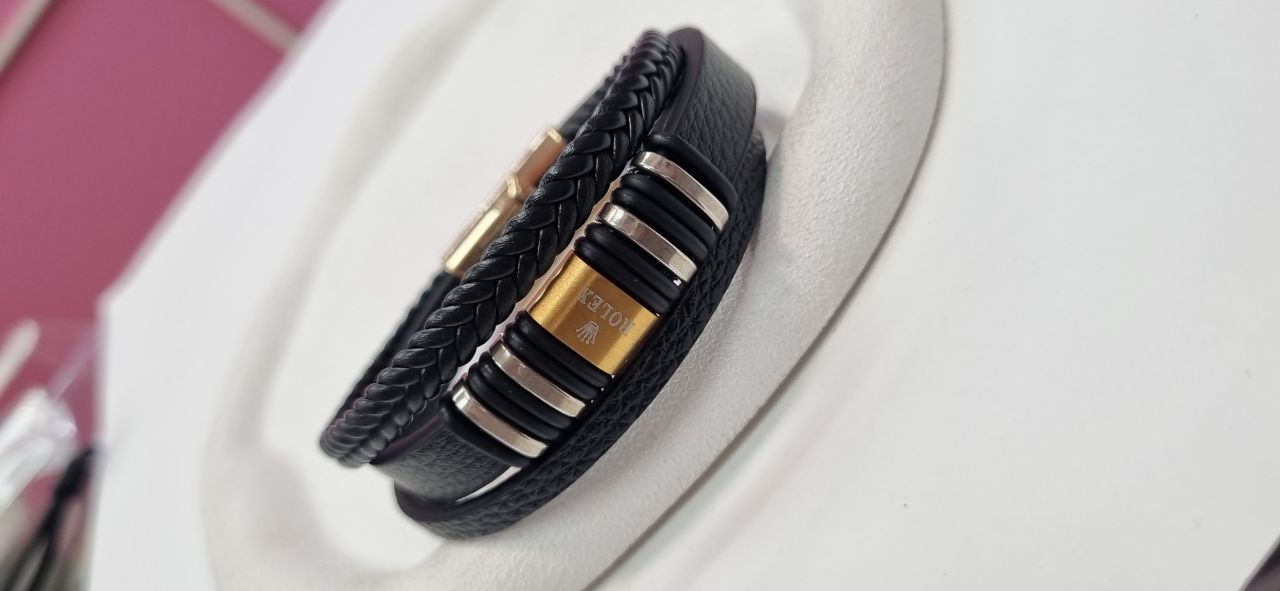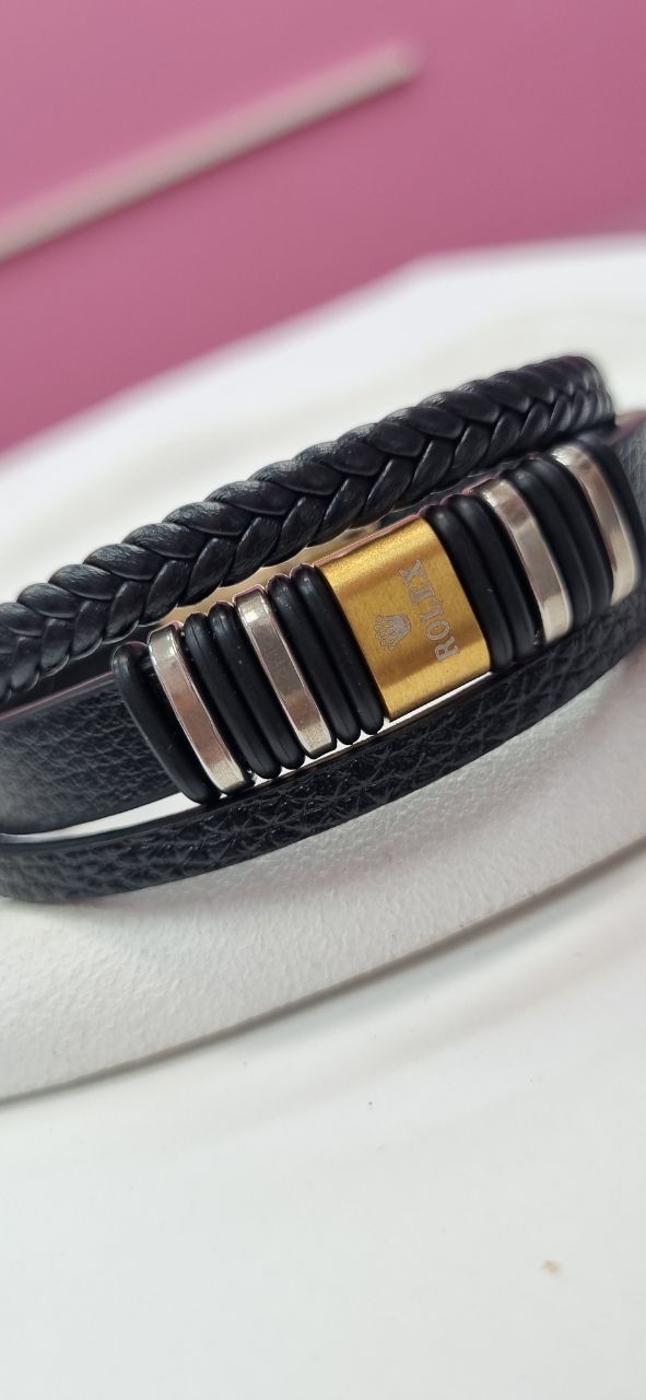 دستبند چرم پلاک استیل مردانه رولکس قفل مگنتی رنگ ثابت بدون تغییر رنگ بدون پوسته پوسته شدن شیک و اسپرت