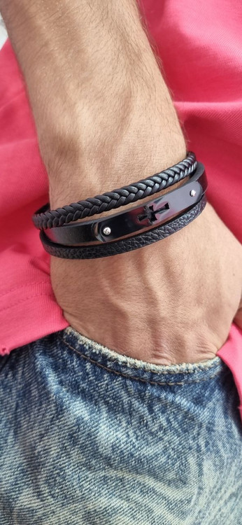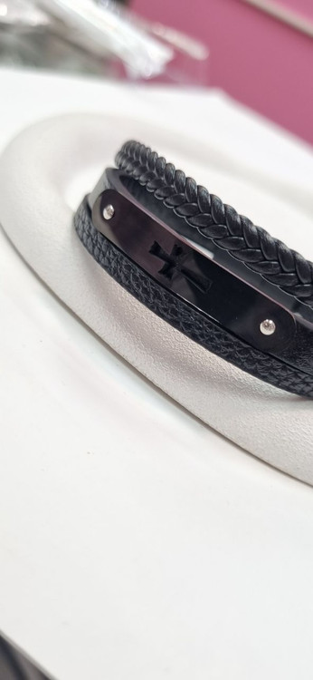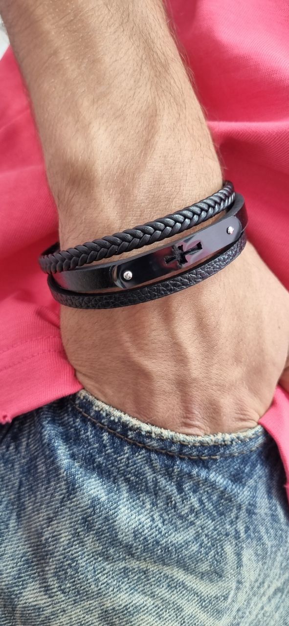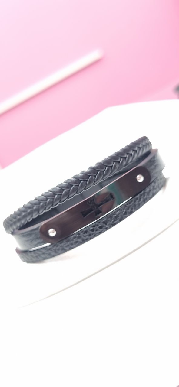 دستبند چرم پلاک استیل مردانه صلیب