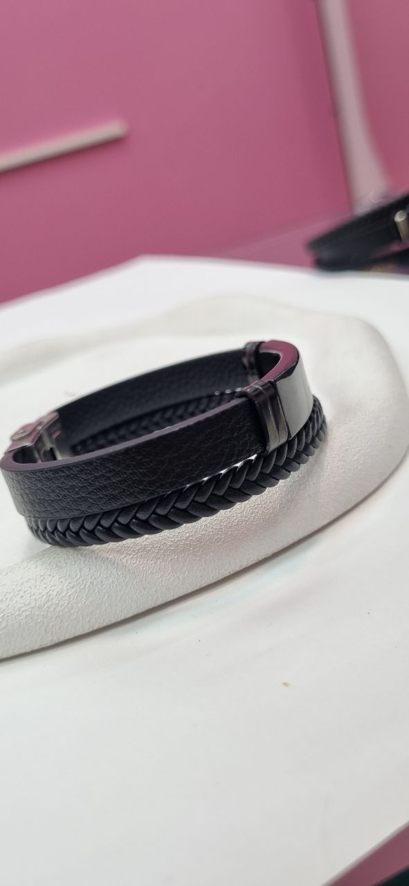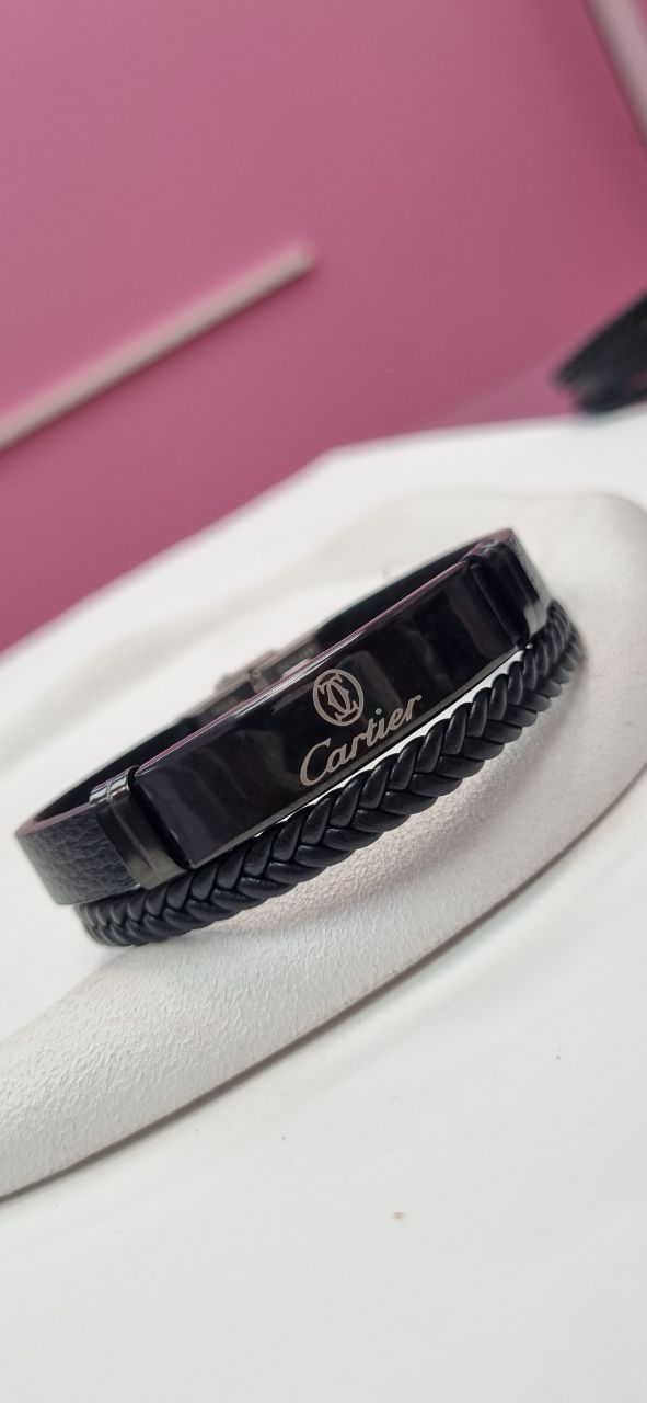 دستبند چرم پلاک استیل مردانه کارتیر قفل مگنتی رنگ ثابت بدون تغییر رنگ بدون پوسته پوسته شدن شیک و اسپرت