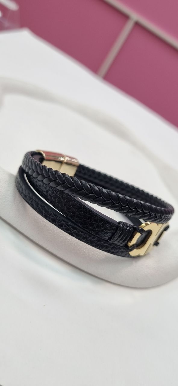 دستبند چرم پلاک استیل مردانه فری گامور