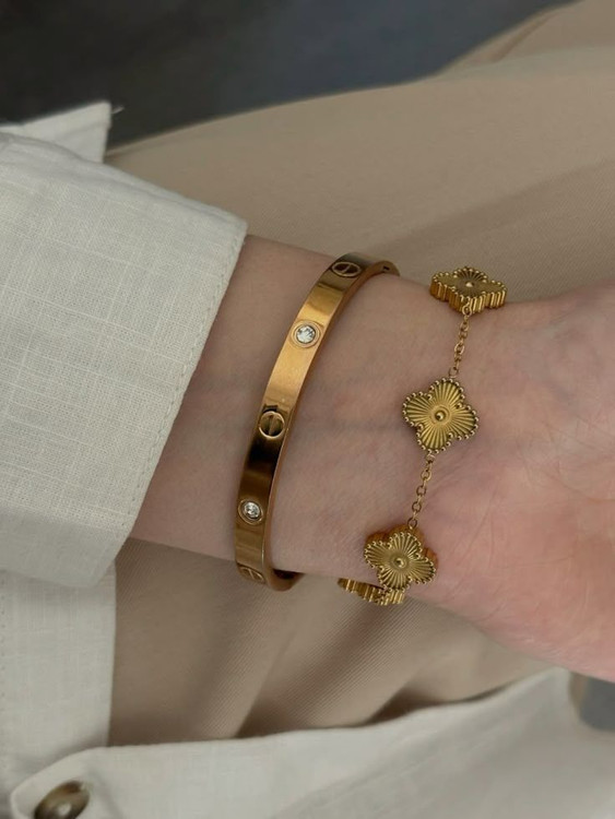 دستبند استیل ونکلیف تراش طلایی