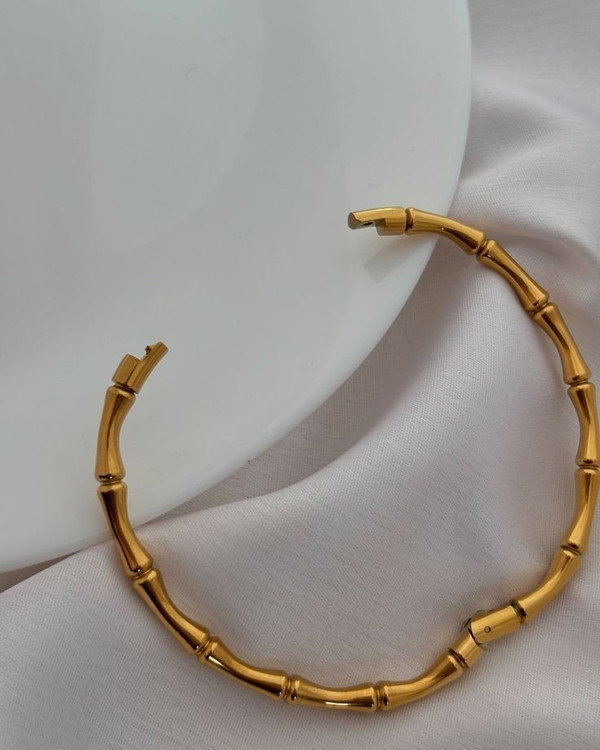 دستبند بنگل استیل مدل استخونی طلایی رنگ ثابت بدون ایجاد حساسیت و تغییر رنگ