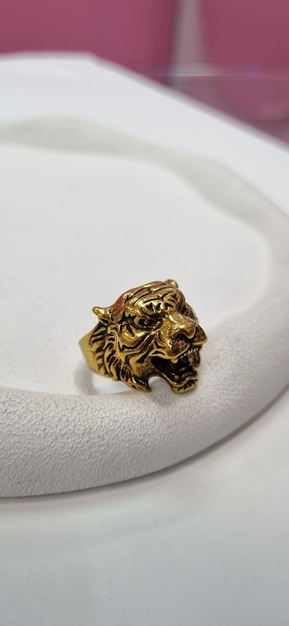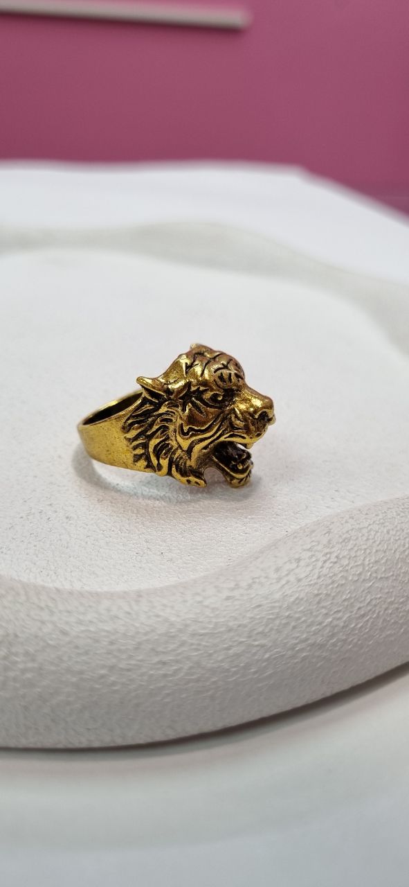 انگشتر مردانه سه بعدی طلایی شیر