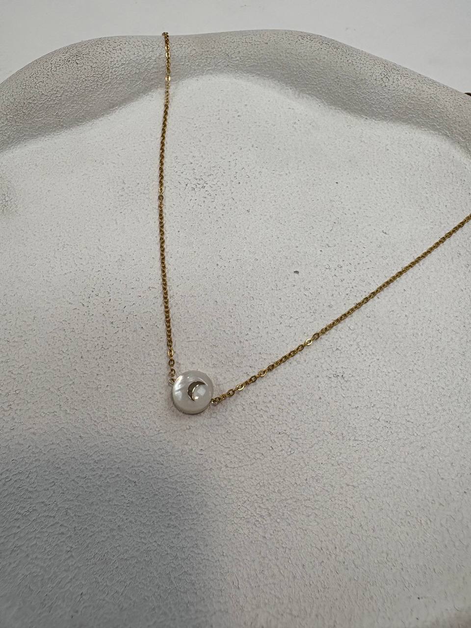 گردنبند استیل طلایی و صدف طبیعی ماه