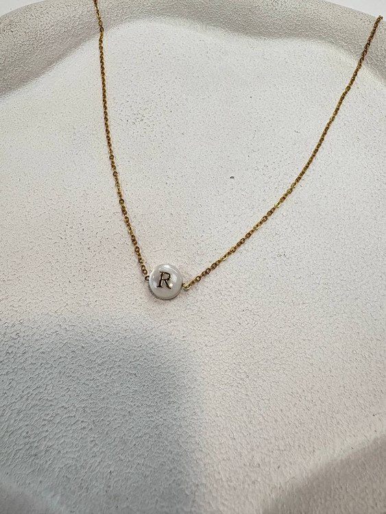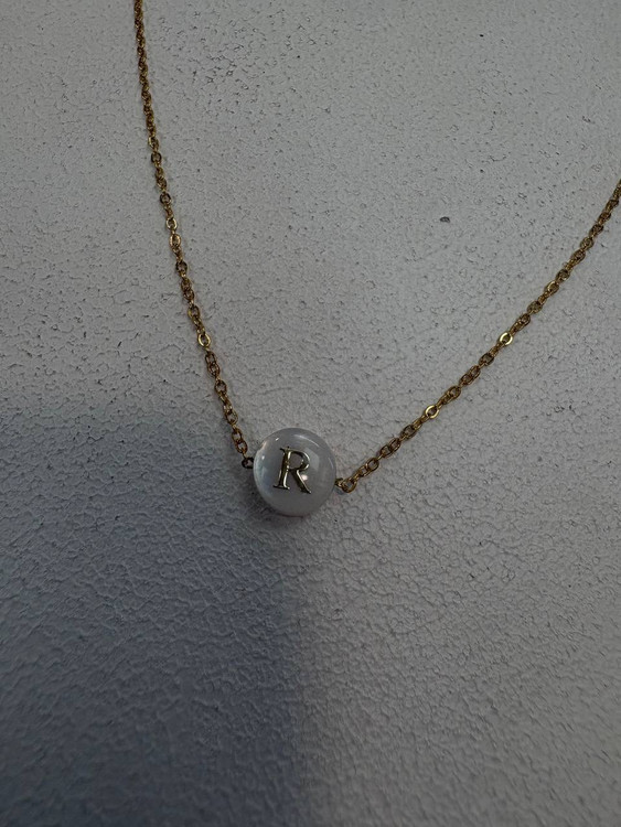 گردنبند استیل طلایی و صدف طبیعی حرف R