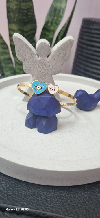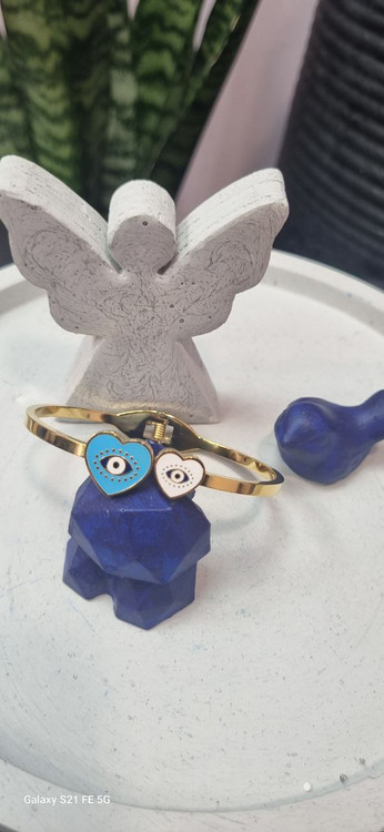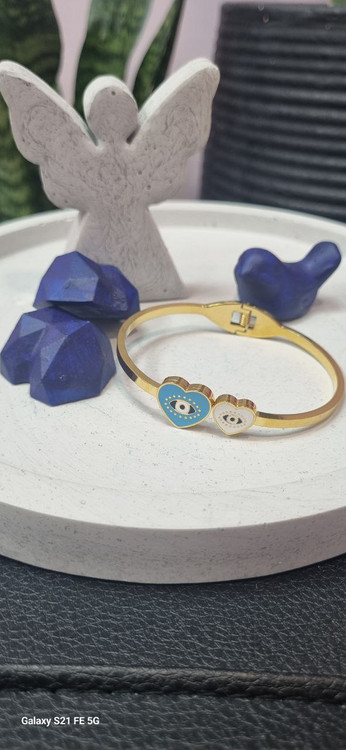 دستبند بنگل استیل چشم نظر قلب طلایی رنگ ثابت بدون ایجاد حساسیت و تغییر رنگ