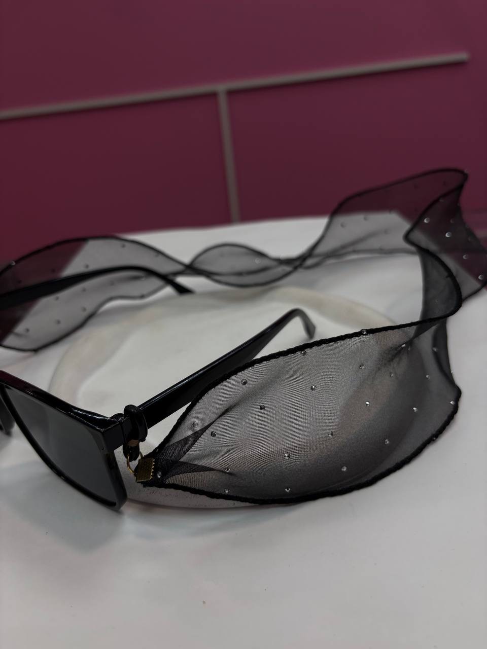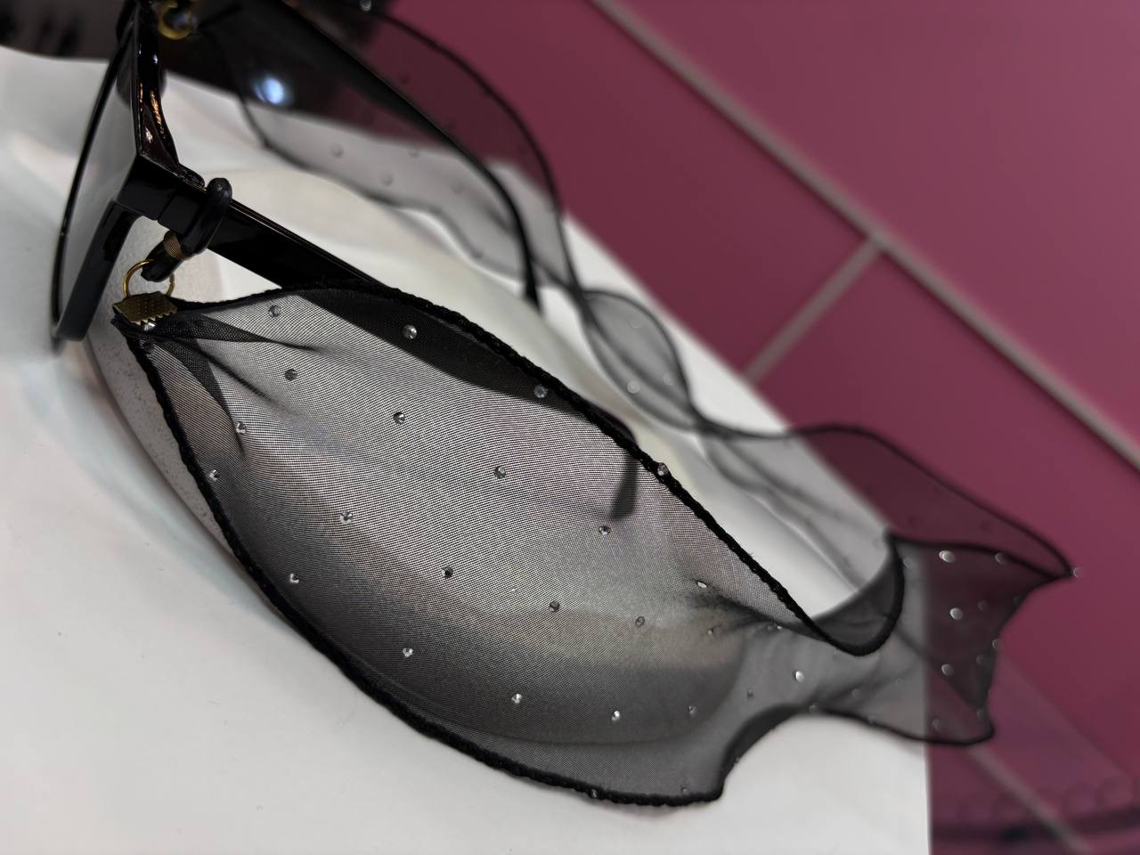 بند عینک حریر مشکی نگین دار