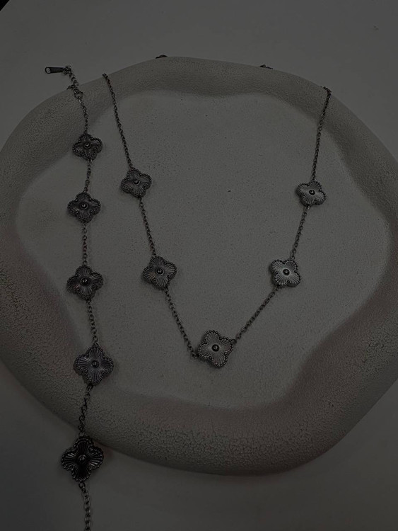 نیم ست گردنبند و دستبند استیل نقره ای ونکلیف تراش