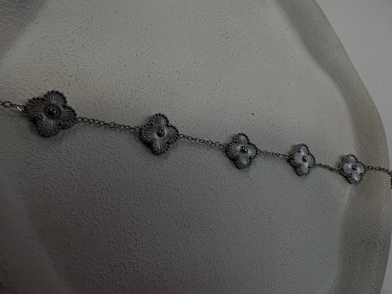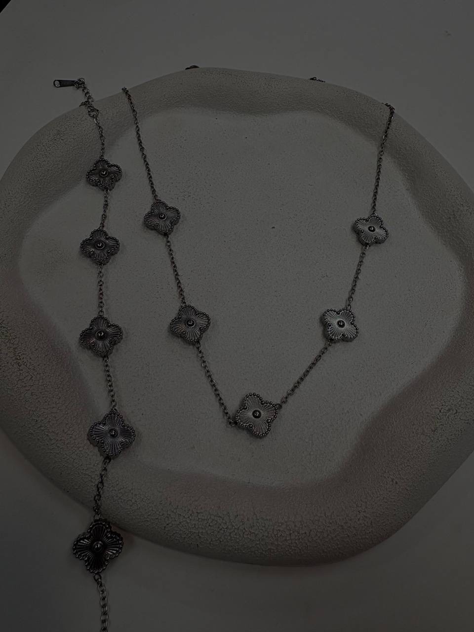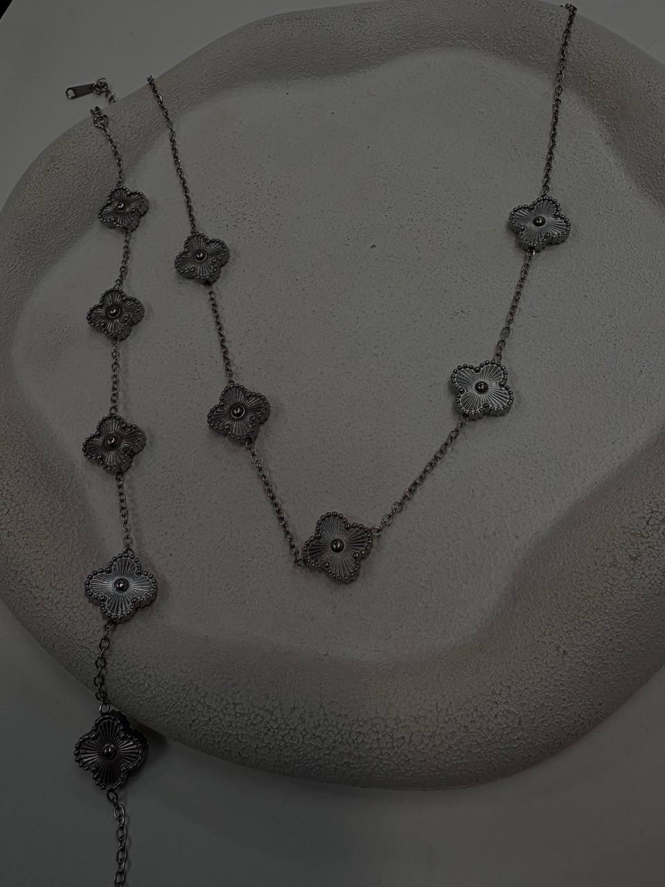 نیم ست گردنبند و دستبند استیل نقره ای ونکلیف تراش