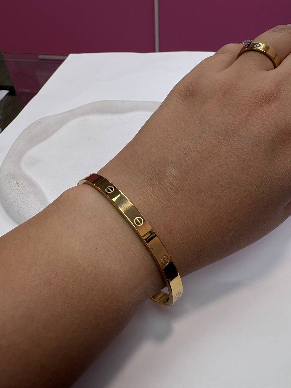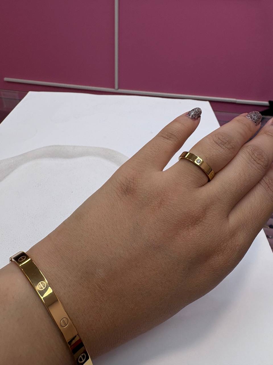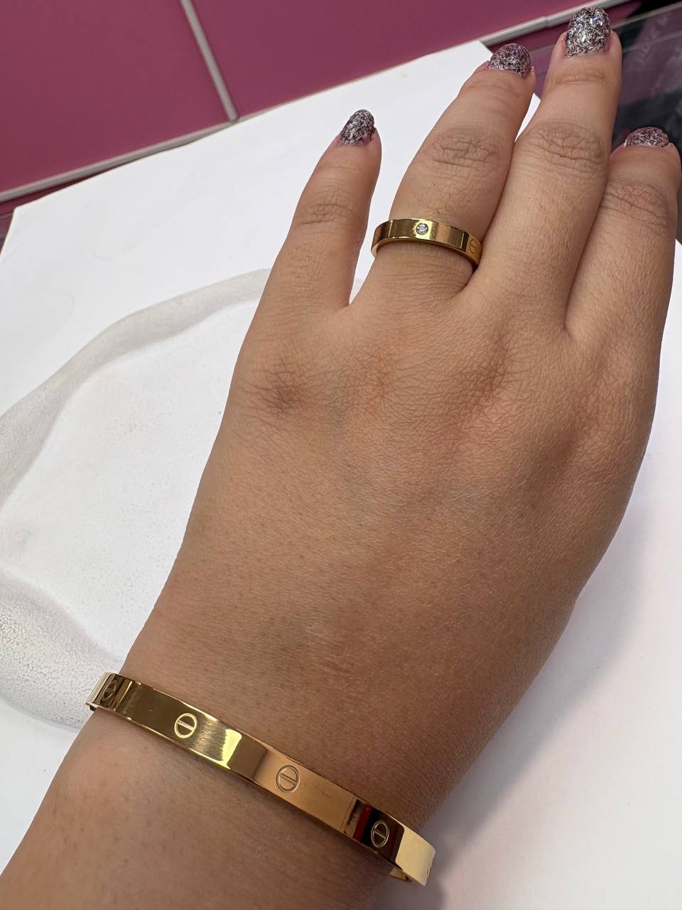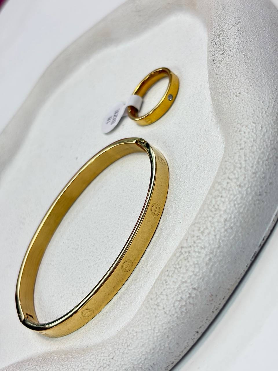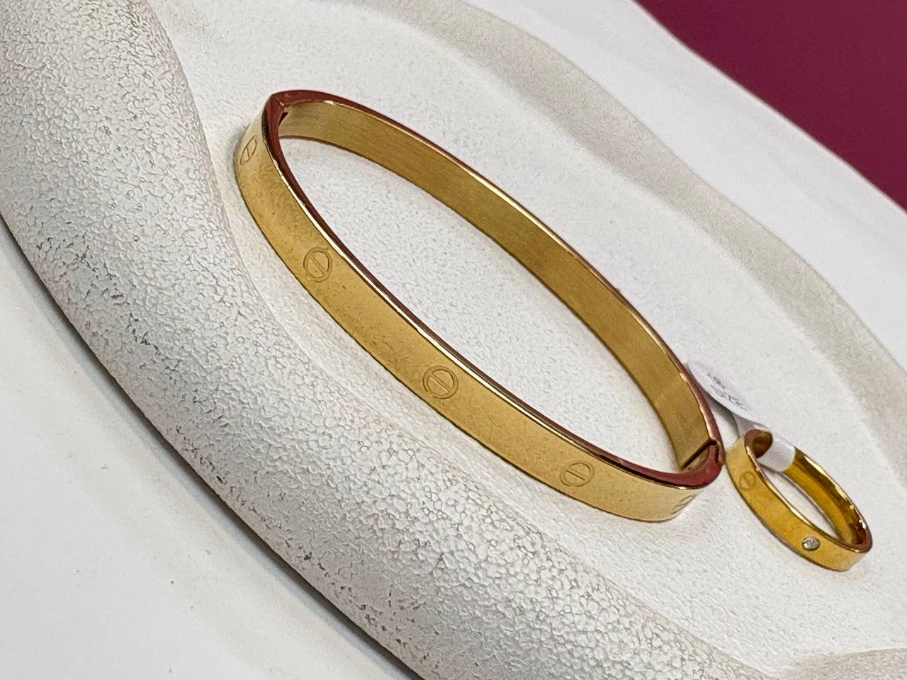 دستبند بنگل و انگشتر استیل وارداتی طلایی کارتیر