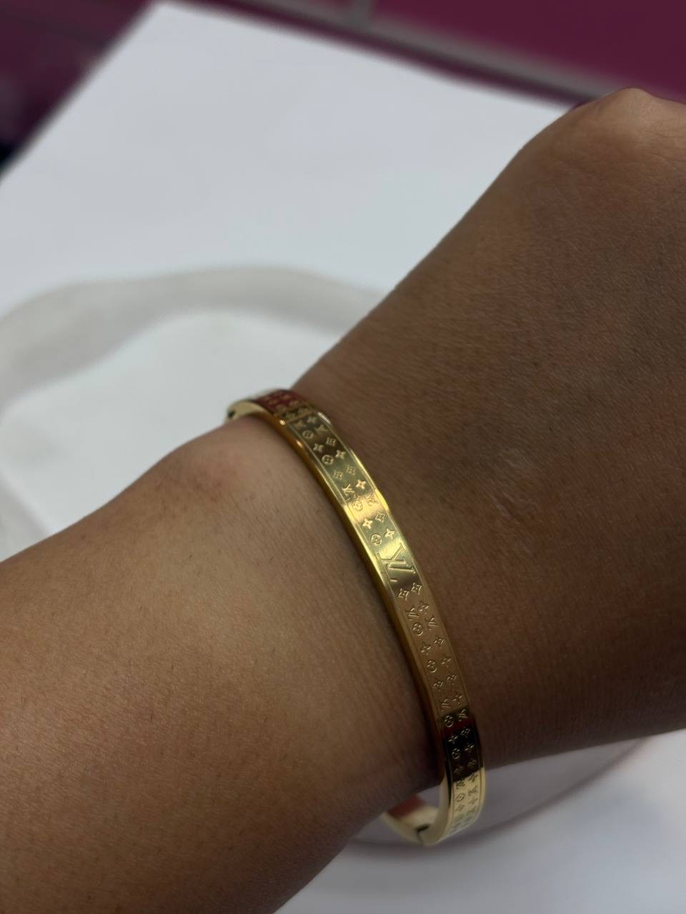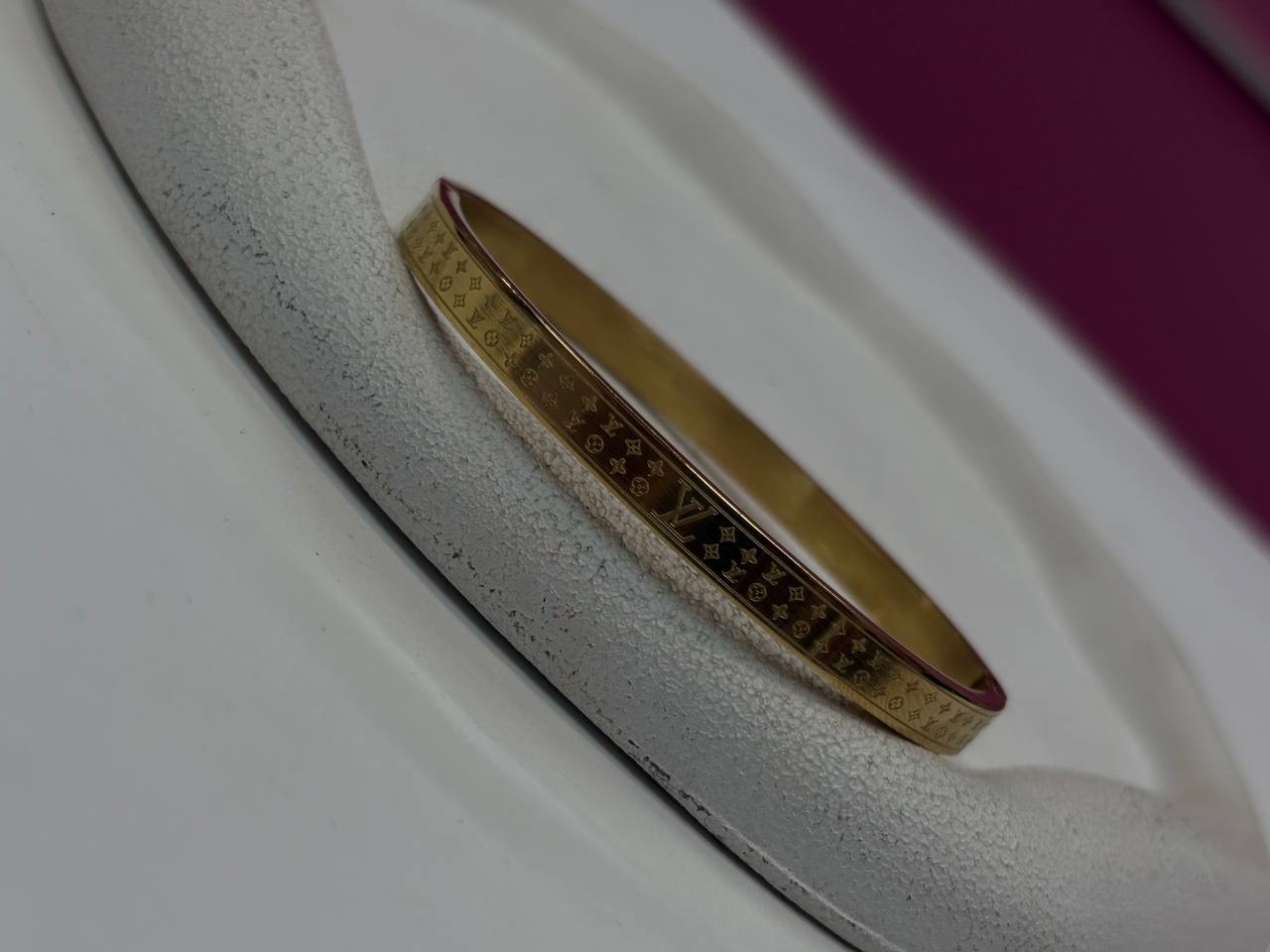 دستبند بنگل طلایی استیل وارداتی LV