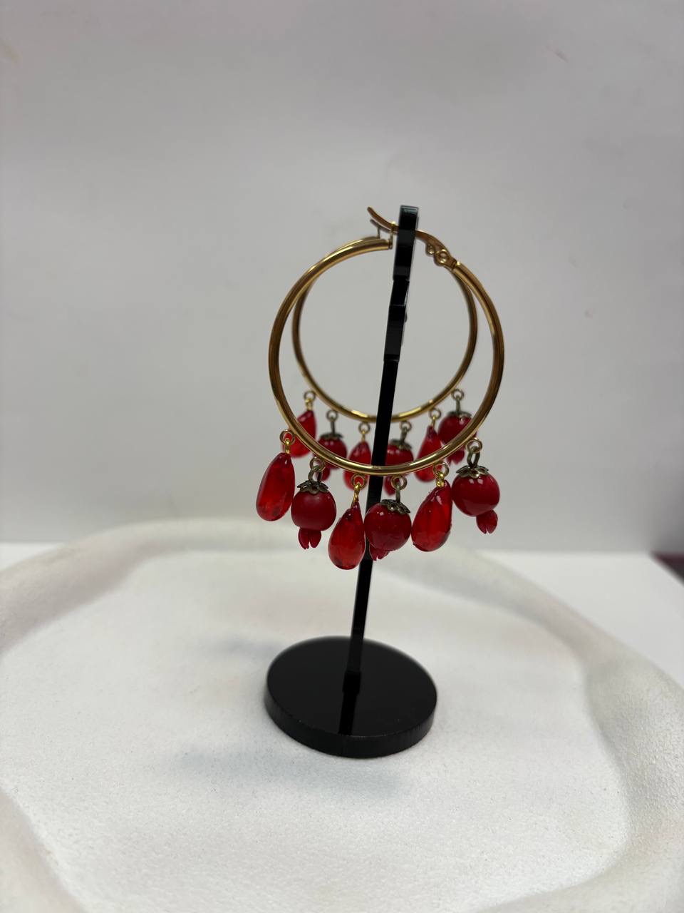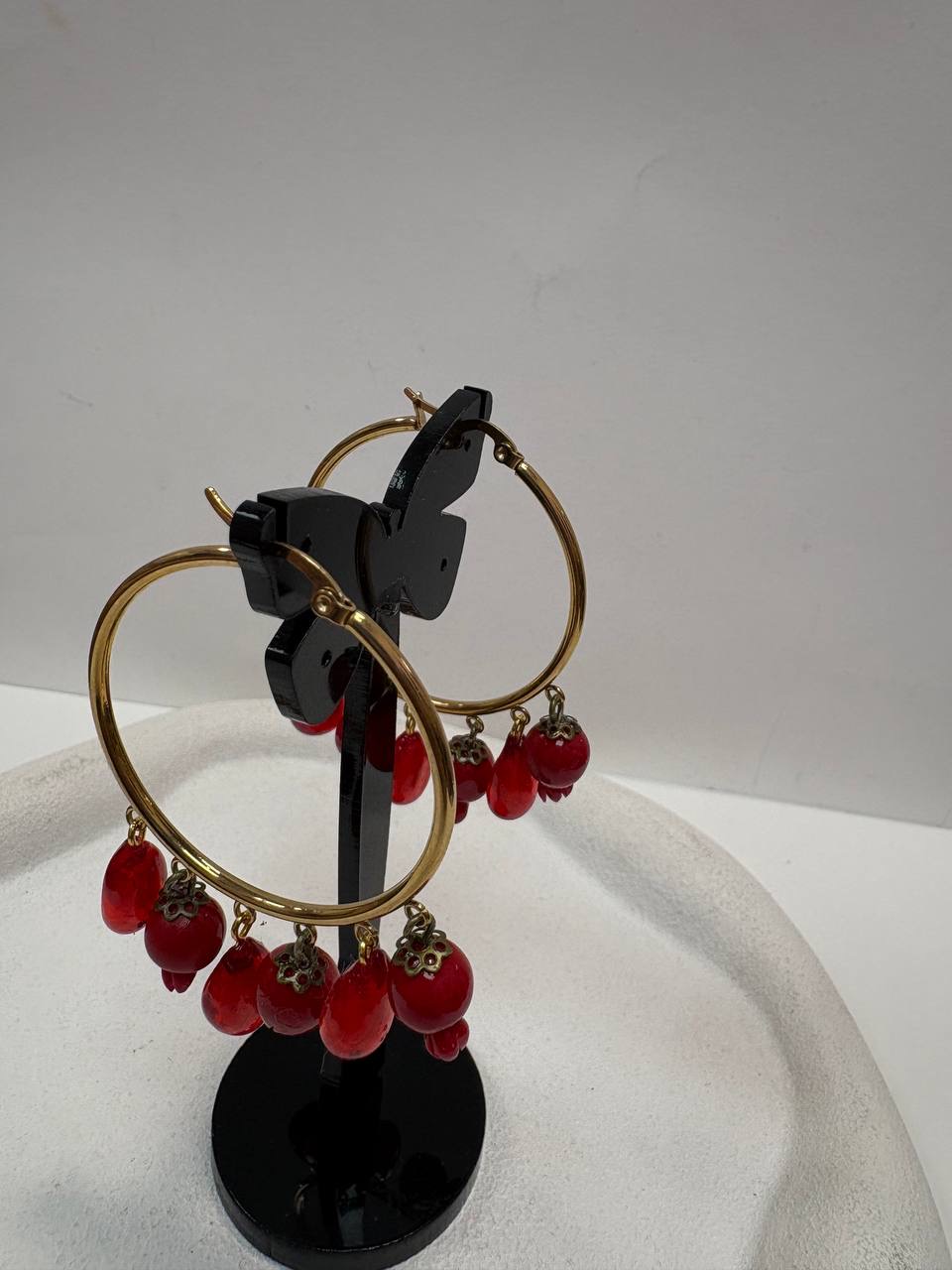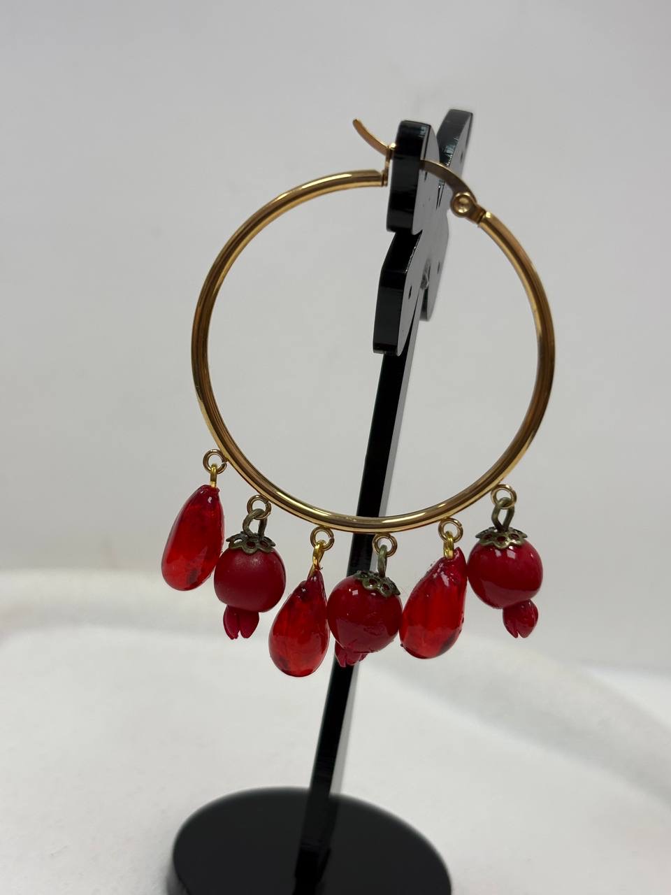 گوشواره حلقه ای یلدایی استیل دونه انار و انار