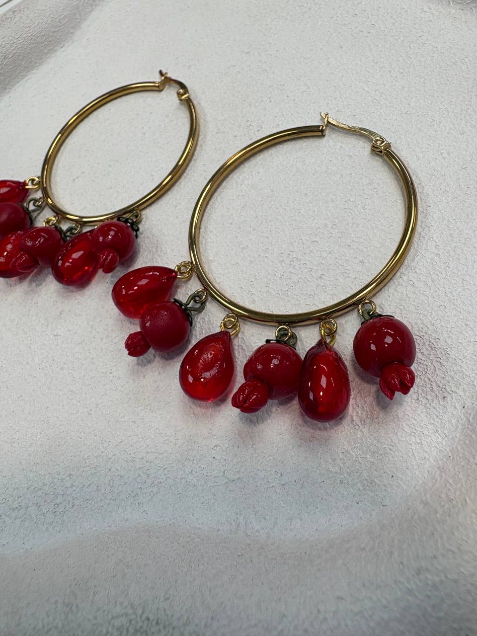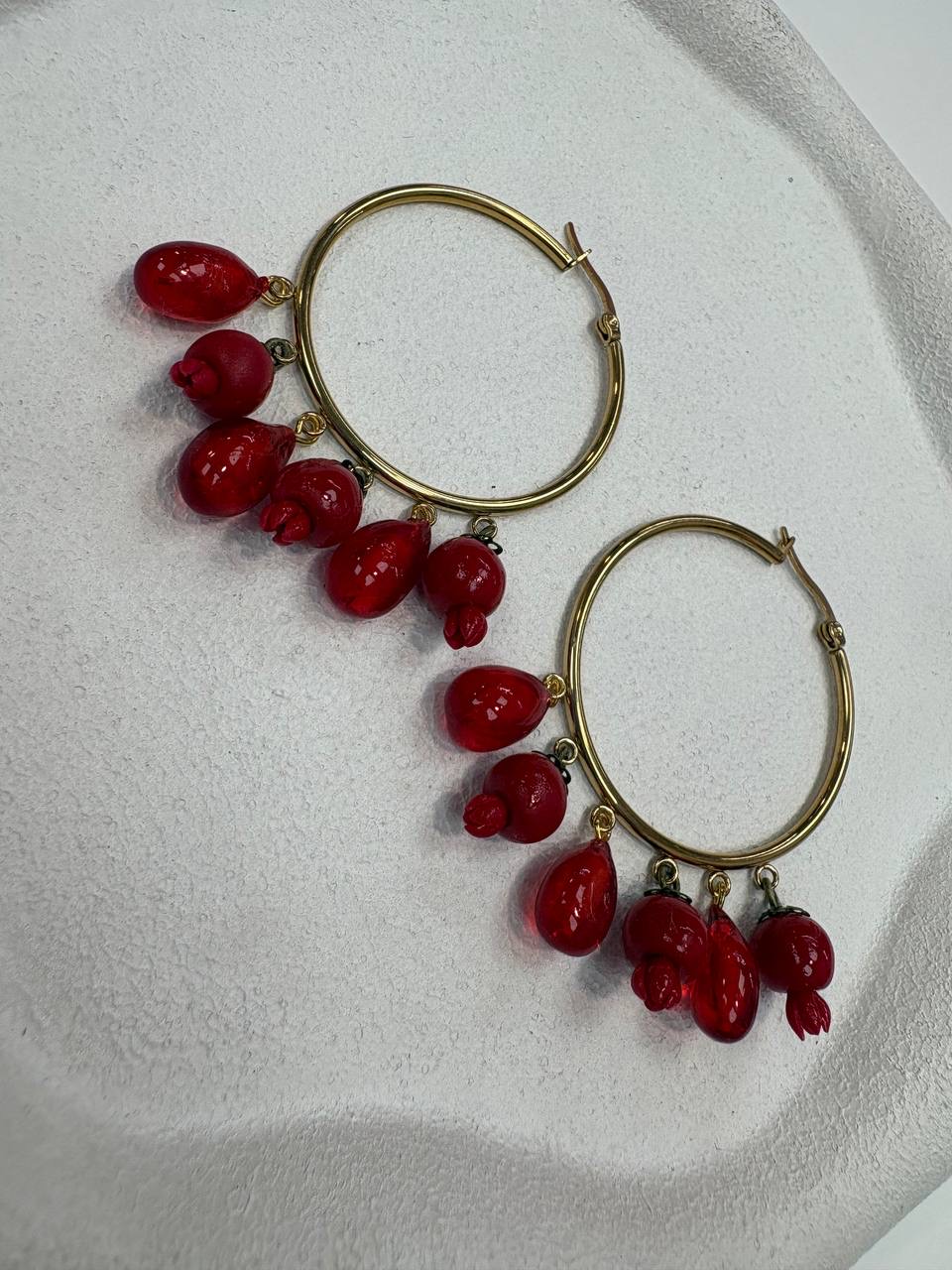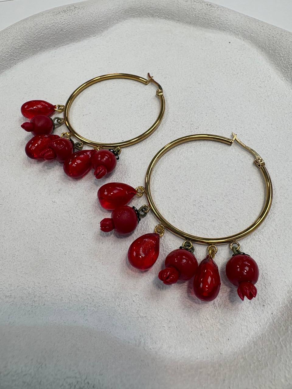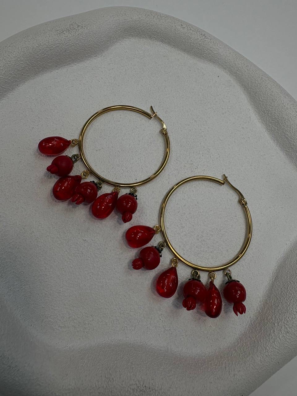 گوشواره حلقه ای یلدایی استیل دونه انار و انار