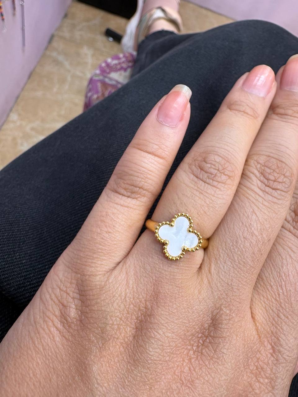 انگشتراستیل ونکلیف سفید صدفی