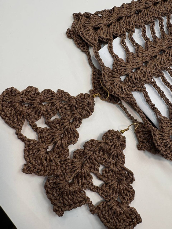 ست کلاه و گوشواره بافت کتان