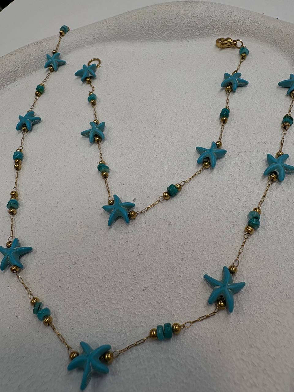 نیم ست استیل ستاره صدف طبیعی فیروزه