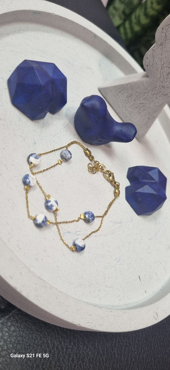 دستبند زنجیر و سنگ لاجورد طلایی رنگ ثابت بدون ایجاد حساسیت و تغییر رنگ