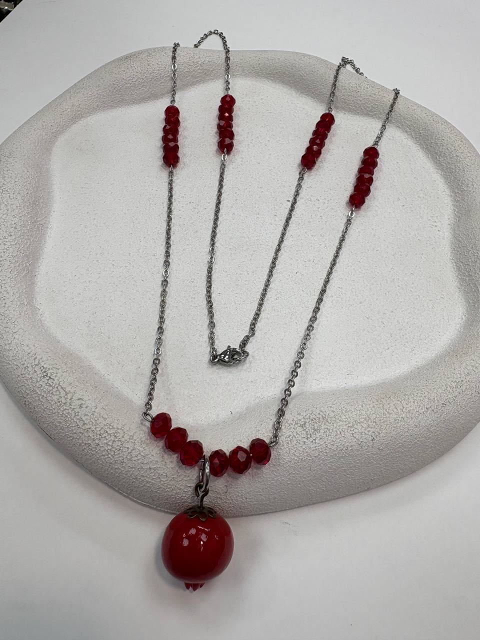 گردنبنداستیل یلدایی اویز انار و کریستال نقره ای