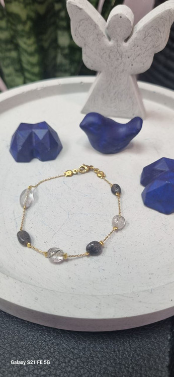 دستبند زنجیر استیل طلایی و سنگ روتایل مشکی رنگ ثابت بدون ایجاد حساسیت و تغییر رنگ