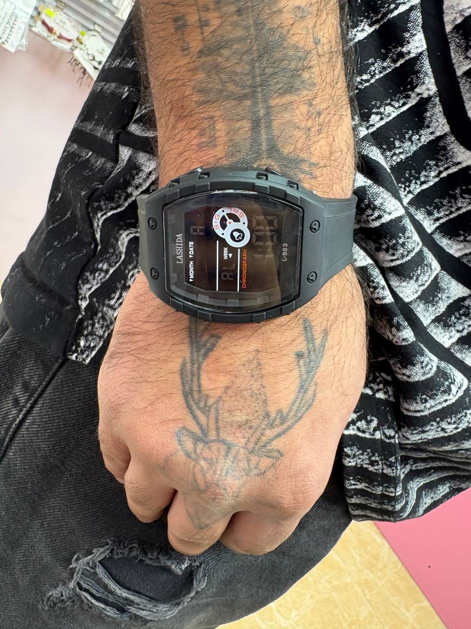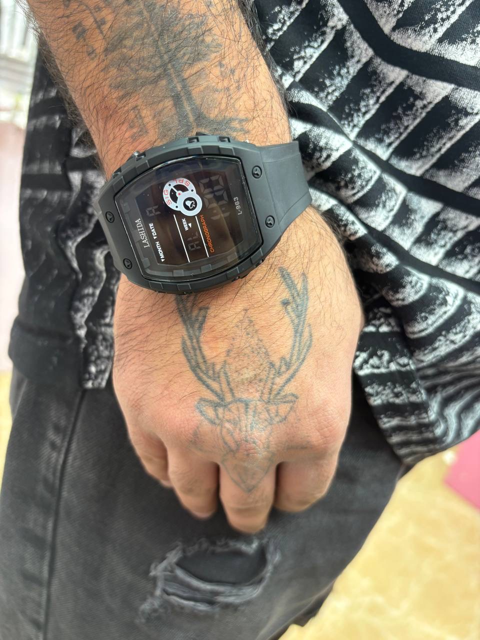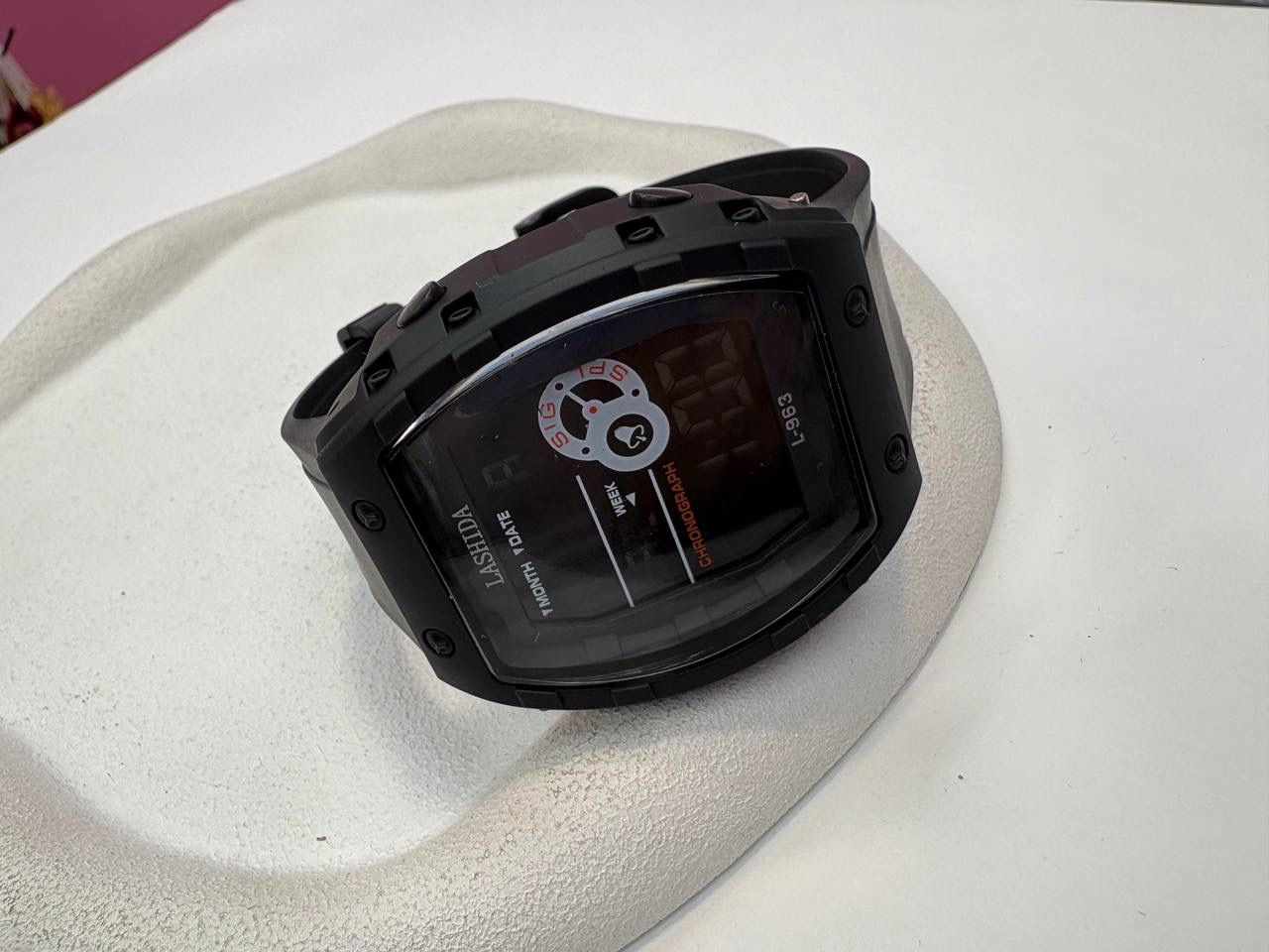 ساعت بنمی اسپرت وارداتی مشکی ضد آب تقویم دیجیتال بنده پی یو قفل تسمه ای کرنومتر پشت پیچ کیفیت عالی باطری خور
