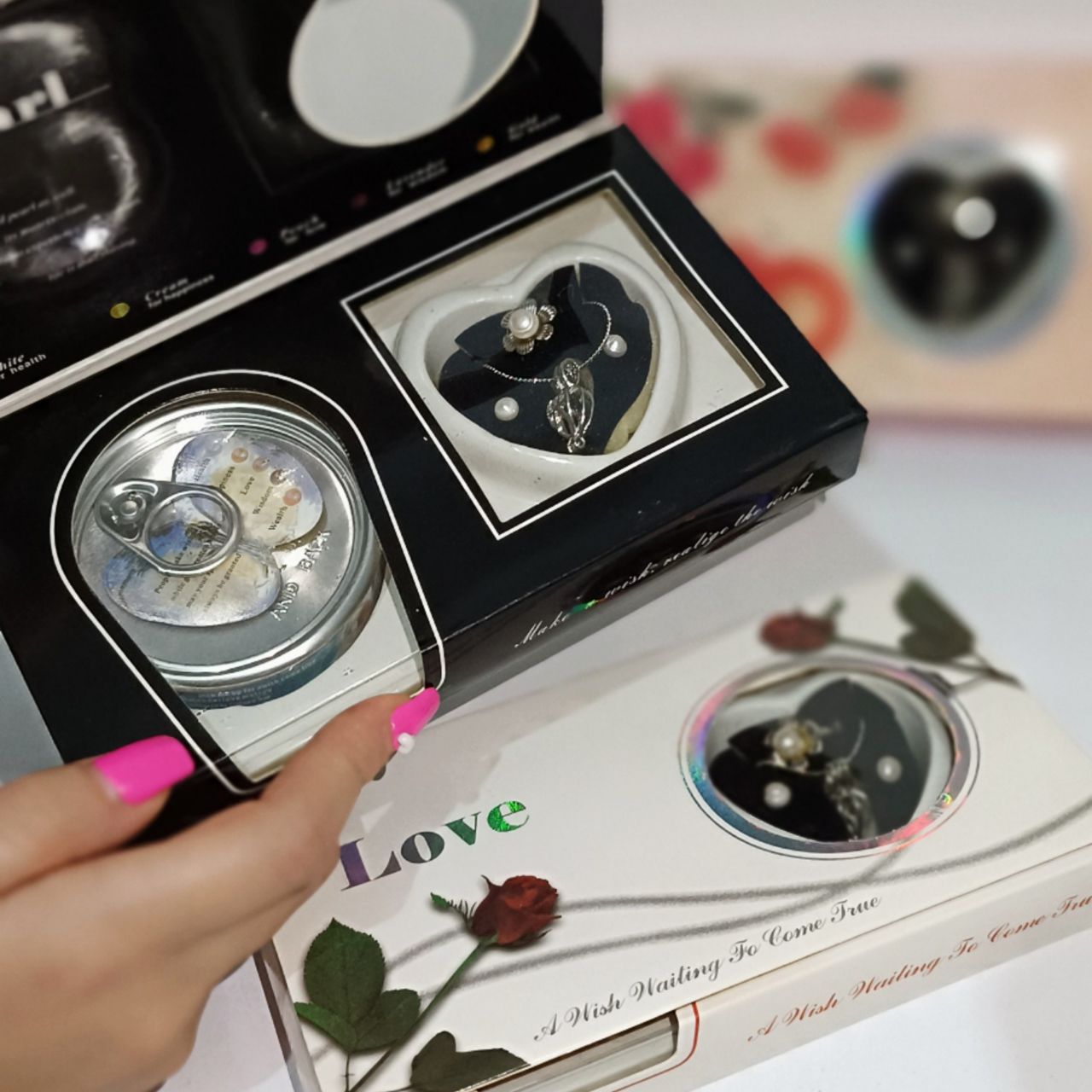 کنسرو ست گردنبند و گوشواره و انگشتر مروارید عشق