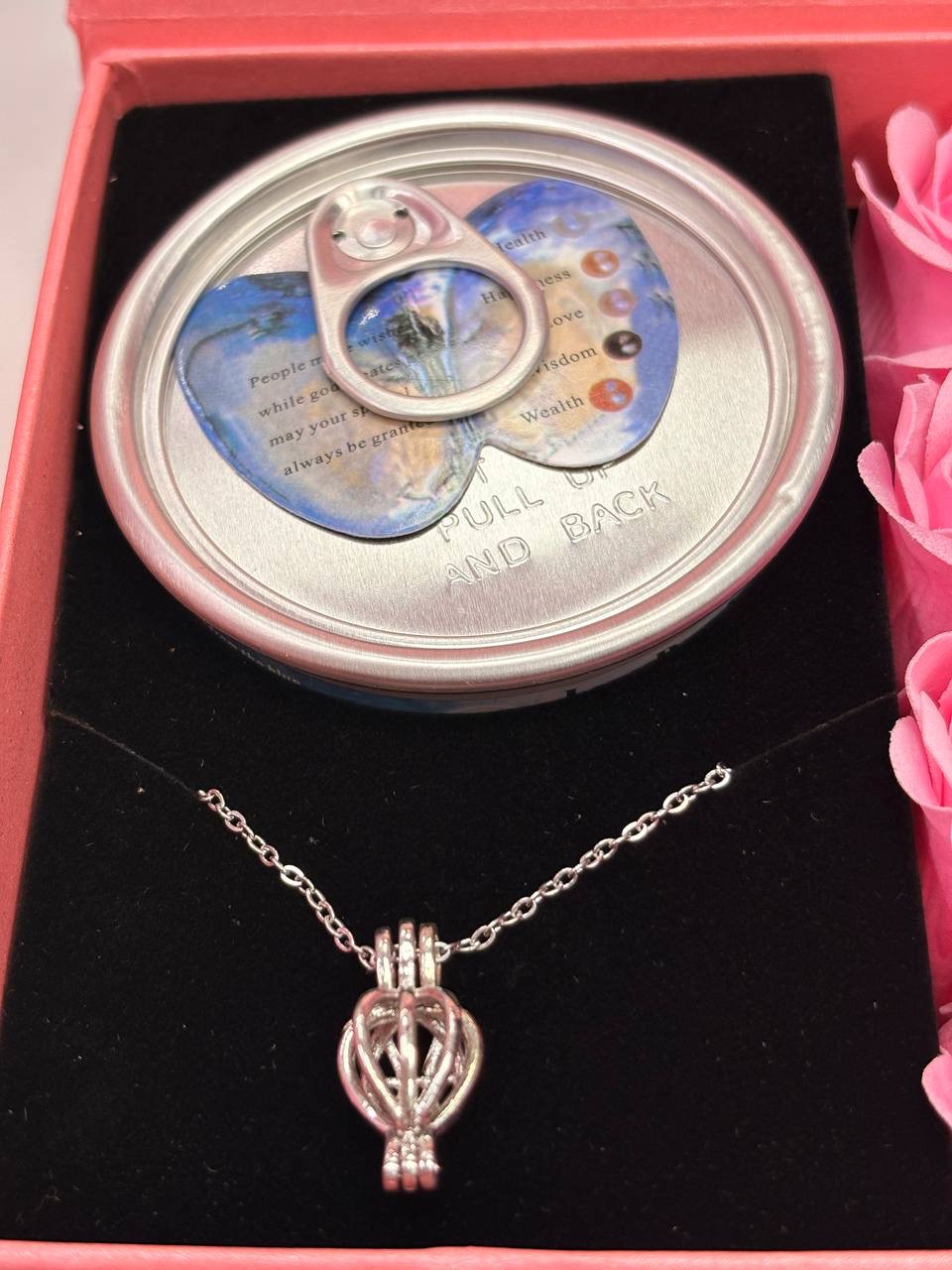 زنجیر استیل رنگ ثابت داخل کنسرو صدف طبیعی داخل ان مروارید پرورشی